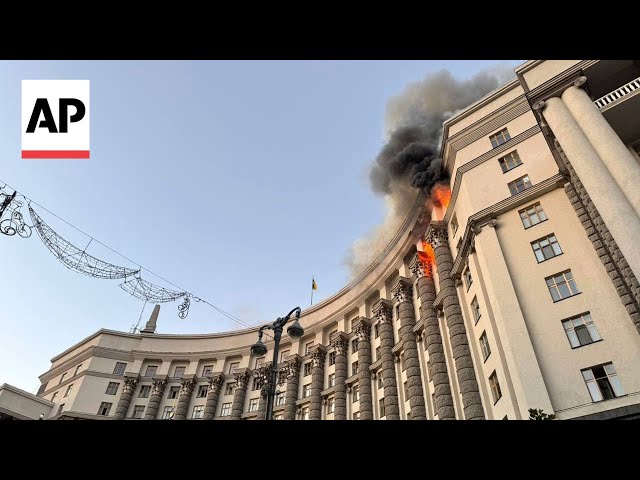 Ukraine’s Prime Minister shows damage of government building in Kyiv