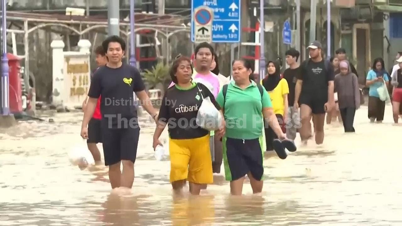 Residents wade through submerged roads as severe flooding hits Thailand, killing 33